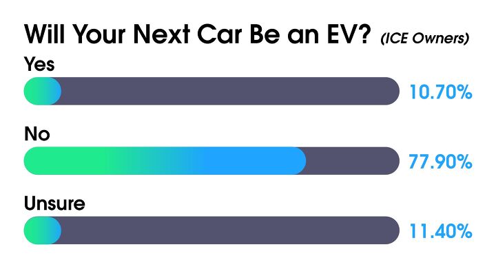 Apklausoje, kurioje dalyvavo daugybė „VerticalScope“ bendruomenių platformos narių, buvo užduotas klausimas: „Ar jūsų kitas automobilis bus elektrinis?“ Stulbinantys 88% dabartinių elektromobilių savininkų ir entuziastų atsakė, kad jie pirktų dar vieną, tuo tarpu tik 4% teigė, jog neplanuoja to daryti. 8% respondentų liko neapsisprendę. Priešingai, tik 11% tų, kurie neturi elektromobilio, domisi tokia galimybe, o net 78% teigia, kad jų tai nedomina. Likę 11% dar neapsisprendė.